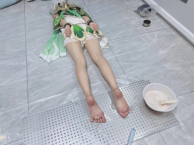 【咕cos】小草神的山药泥地狱痒责,绝对极限感官折磨,痒到挣扎到出血!由内而外的完全足底拷问!