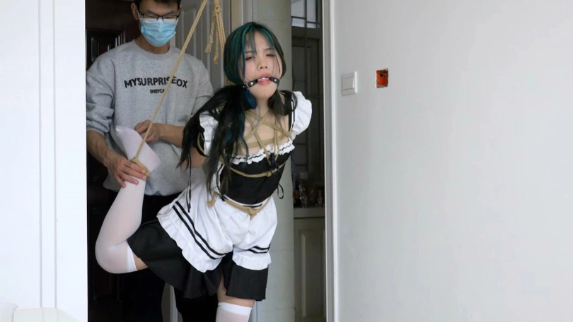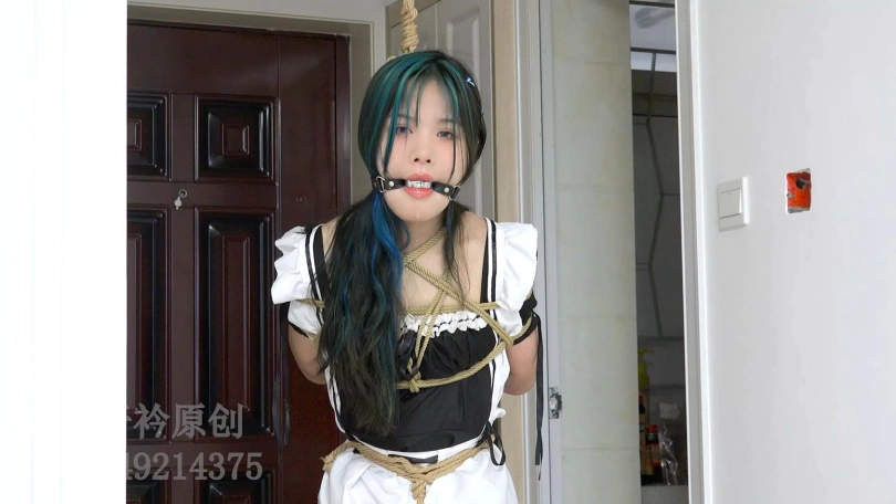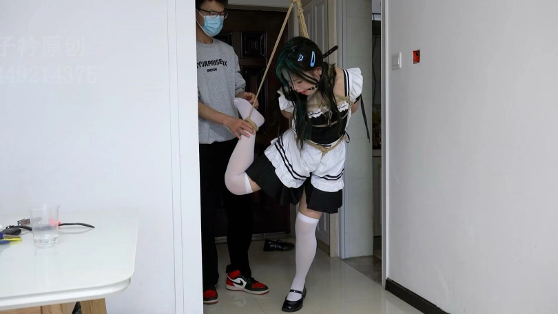 【子衿】琦琦女仆装白丝单腿吊口球口水挠脚折磨