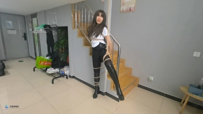 美女找到一间物美价廉的出租屋,和房东商量好后美女穿上过膝靴来出租房内等她。但美女不知道这间出租房的诡异之处。当美女站在阳台看风景的时候魔绳偷偷钻出来捆住了美女的脚踝,任凭美女怎么挣扎都挣脱不了。最终美女全身都被捆住形成了一个吊腿缚的姿势。她唯一能做的就是祈求房东早日到达来解救她………
