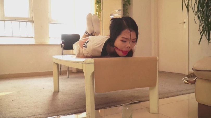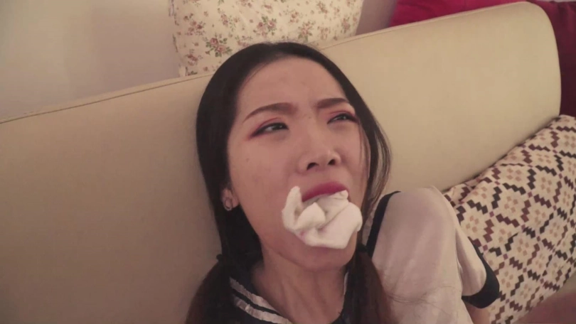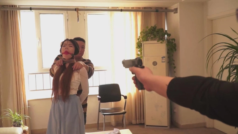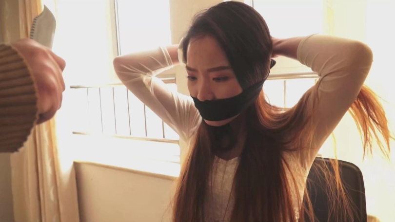 但无论如何,这毕竟是绳艺片,而且全剧有一个半小时。所以,涵盖的内容也很多。除了刚刚介绍的爱情关系、劫匪入室之外,还有家居装、运动装、学生装、旗袍、婚纱等各种服装的捆绑堵嘴。黑丝、肉丝、白丝、裤袜、中筒丝袜、短丝袜、口球、鼻钩、堵嘴、勒嘴、蒙嘴、驷马挣扎、丝袜脚拨电话求救等等等等元素应有尽有。和我之前的定拍一样,绳狱系列的每一部作品,绝对会是丝袜和堵嘴爱好者的福音。