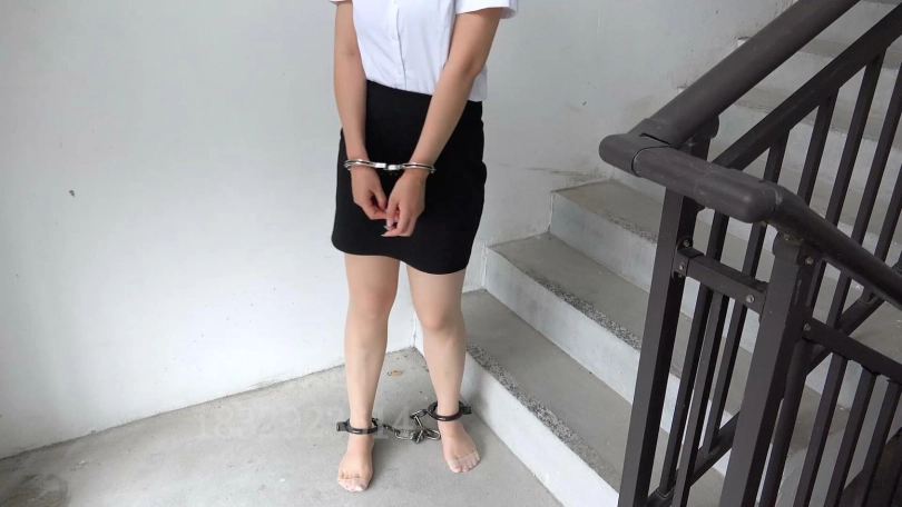 【子衿】小雅职业装肉丝镣铐楼道聊天