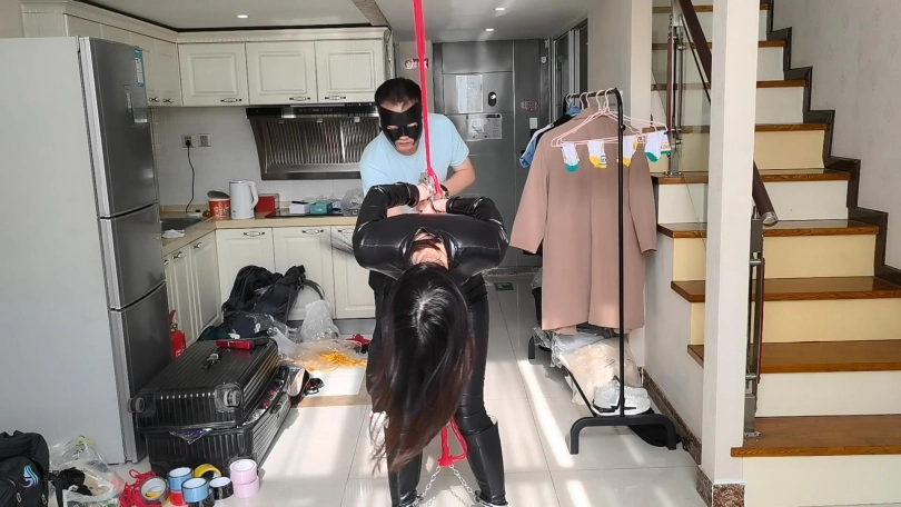 特工诗彤奉命调查近期发生的少女失踪案。她潜入了可疑房子,但她不知道她的行踪已经被人贩发现。她发现房间里有大量的绳子,确认这里就是人贩的老窝时。人贩从后面偷袭了她,将她手里的枪抢了过来,并制服了诗彤。人贩询问是谁派她过来的,但诗彤并不打算告诉对方。人贩决定好好教训下诗彤。男人将诗彤双手背过去铐住,胯部绑上股绳,双脚也被脚铐铐住。牵动着股绳在房间里走动。每次牵引绳子都摩擦着她的敏感部位,诗彤边走边发出痛苦的呻吟。