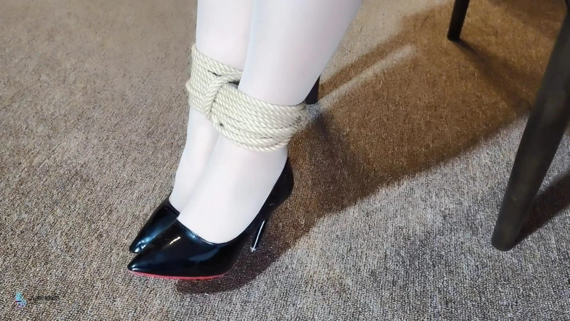 露楠一蹦一跳的来到客厅,对着窗外试图呼救。但被折返回来的歹徒发现。歹徒非常愤怒,他将露楠拖回来,并解开了束缚。歹徒让露楠脱下腿上的连裤袜,并用胶带紧密的捆绑住了露楠的手脚。将她放在地上。男人确认好露楠无法挣脱束缚后离开了房间。露楠努力的在地上爬行,但这次的束缚很紧,她无法挣脱,只能在地上挣扎。过了一段时间,看房的客户来到房间里,发现地上被捆绑的露楠,并帮她解开了身上的束缚。露楠感谢客户并低下了头哭泣。