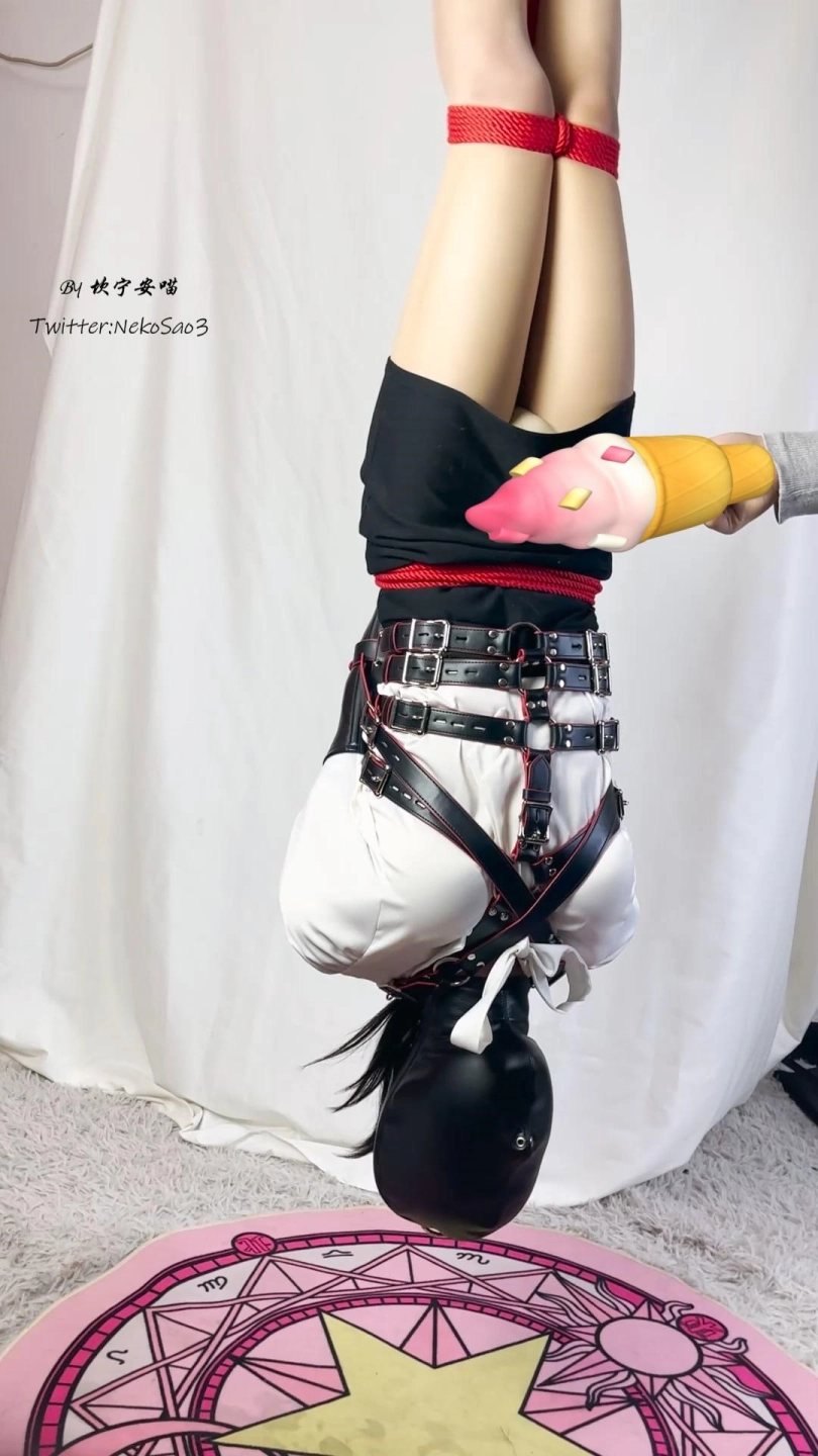 这是一期放置,但是倒吊!起吊方式和自缚倒吊相同的基础上,将上身的绳子改成了拘束带和单手套,在没有外人的帮助下,毫无挣脱可能~后面还被用[不可描述]狠狠地折磨了~ta在玩得尽兴后满意离去,只留下我独自在空中绝望挣扎……