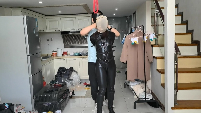 【JS】【诗彤】《诱捕女特工》Part 2 皮革拘束丝袜套头单手套鞭打马具型口塞