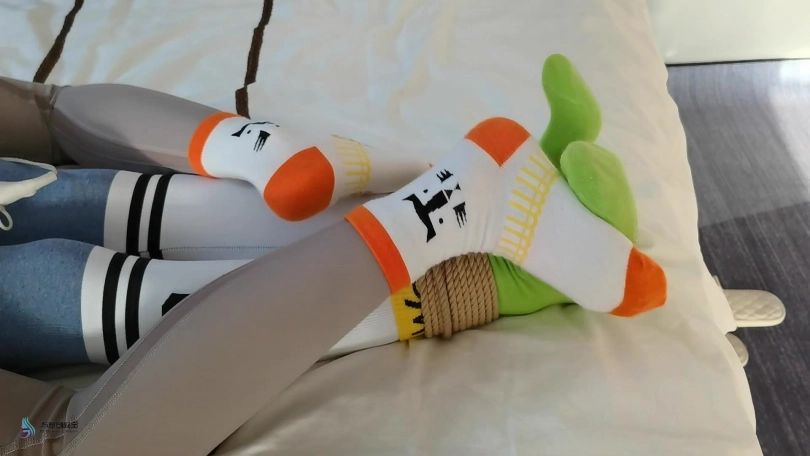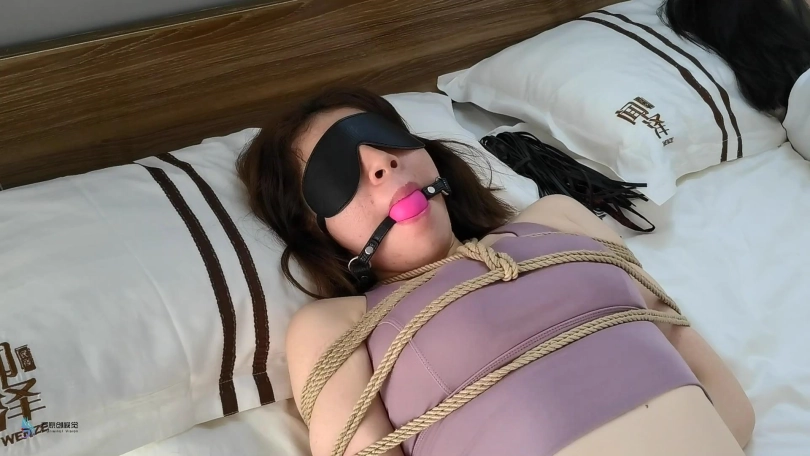 激辣躺在床上休息,而她的旁边也躺着一个人。但是这个人做着很奇怪的动作。她不断的在床上扭来扭曲。原来她的手脚被捆绑着。胯部被紧紧的勒着股绳。她的嘴里被塞着一只口球,眼睛也被蒙上。没错,这正是激辣的室友丹维。