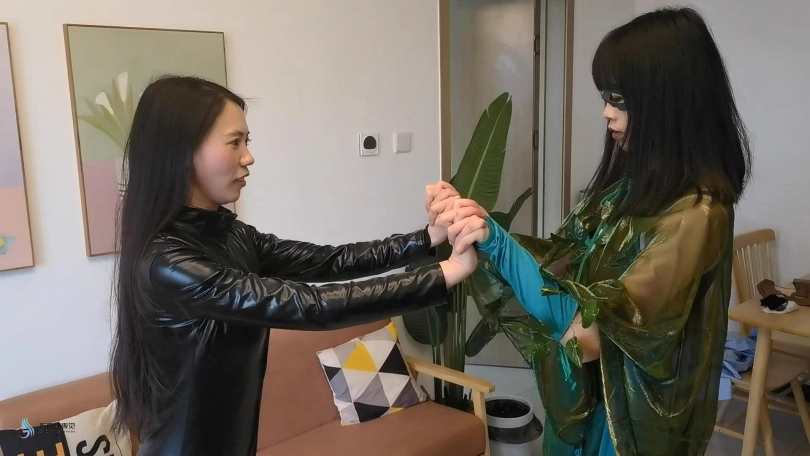 毒腾女找到暗夜女侠,两人一言不合亏就开始打了起来。毒腾女趁机从后面抱住暗夜女侠,双腿紧紧的扣住对反过的身体,同时臂对桉叶女侠进行锁喉。女侠不断挣扎,但很快便缺氧晕了过去。女侠再次醒来时候,发现自己手脚被镣铐束缚着。她想挣脱,但铁链很牢固。过了一会毒腾女走了过来,用她穿着靴子的脚踩住女侠的脖子,毒腾女此时只有一只脚着地,女侠看准时机,抓住她的脚用力一抬,女腾女失去重心摔在地上晕了过去。当她再次醒来时候,她发现自己被铁链镣铐束缚成驷马的姿势趴在床上,嘴巴里还塞着口球。此时女侠走进房间,用皮鞭抽打着毒腾女的身体。打累的女侠脱掉自己的靴子来到床上,她捧起毒腾女的脚丫,抚摸并亲吻着。突然女侠用力掰着对方的脚,毒腾女痛苦的挣扎着。但很快她的脖子被女侠用片子勒着,慢慢的睡了过去。。。