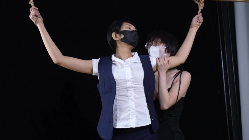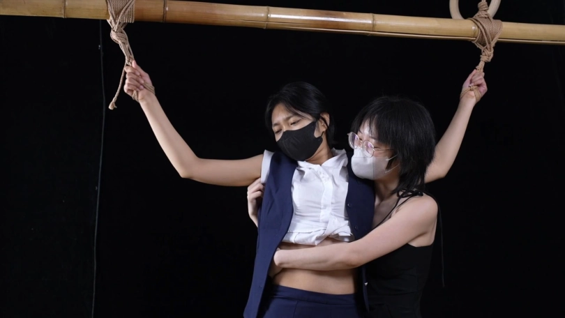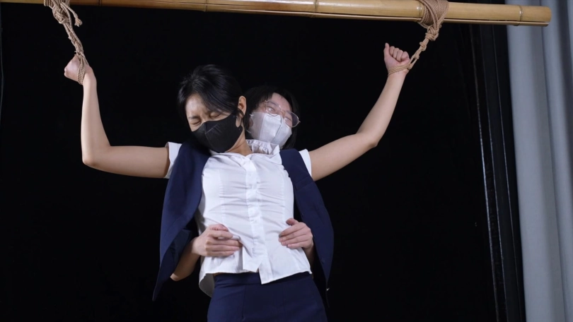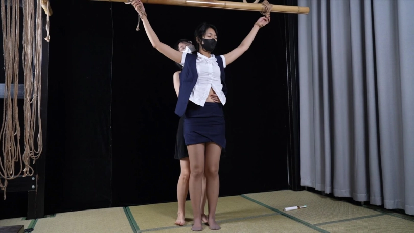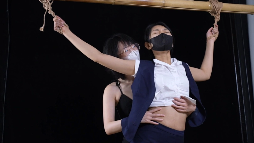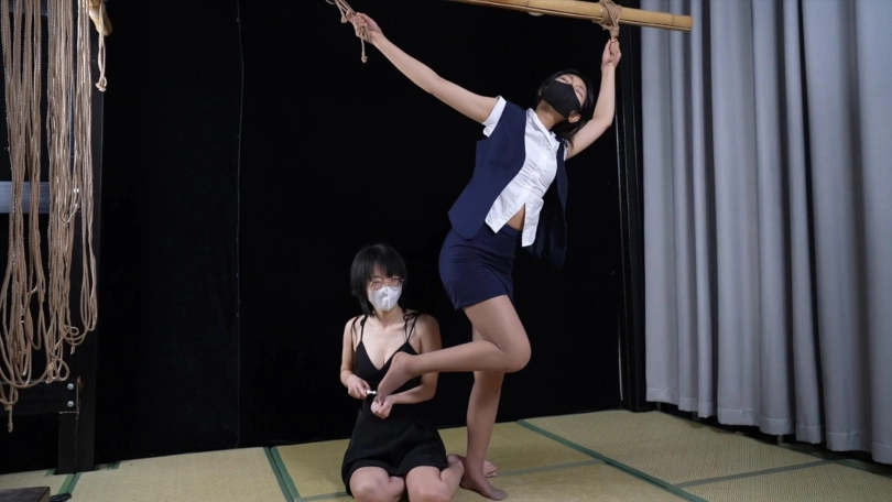 【象人】女女摸摸 猫猫&嗷嗷-空姐制服,咖色丝袜猫猫,大字站立捆绑,被嗷嗷各种咸猪手摸摸。