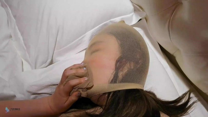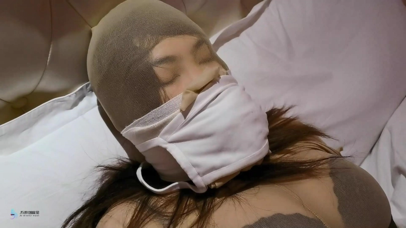 当女贼醒来时发现自己的全身也被丝袜捆绑。不同的是她被绑着的双腿外被套在一条丝袜里,她的嘴巴也被塞进丝袜,头上也被套着丝袜。最外面被绷带紧紧的缠绕着口鼻。女贼想要挣脱,但这根本不可能。