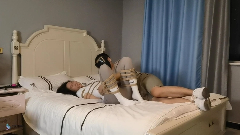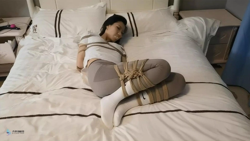 【JS】【伊娜】《意外遭遇2》女白领家中玩自缚,被潜藏在房间中的同好捆绑强碱
