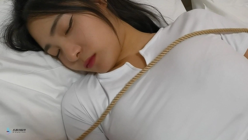 玖念来到旅馆房间,她躺在床上刷着手机,困意袭来睡了过去。但这时房间里窜出很多绳子,将她捆绑起来。当她醒来时惊恐的发现自己被捆绑起来。她想逃离这个奇怪的房间,但绳子根本不给她机会,就在她要下床的时,有一条绳子袭来,将她的双脚紧紧的捆版起来。正在玖挣扎时,她发现自己的嘴巴突然被胶带封住。她惊恐的趴在床上挣扎,但一股神秘力量让她的双脚抬起,并向后背弯曲。她被绳子绑成了驷马的姿势。。。