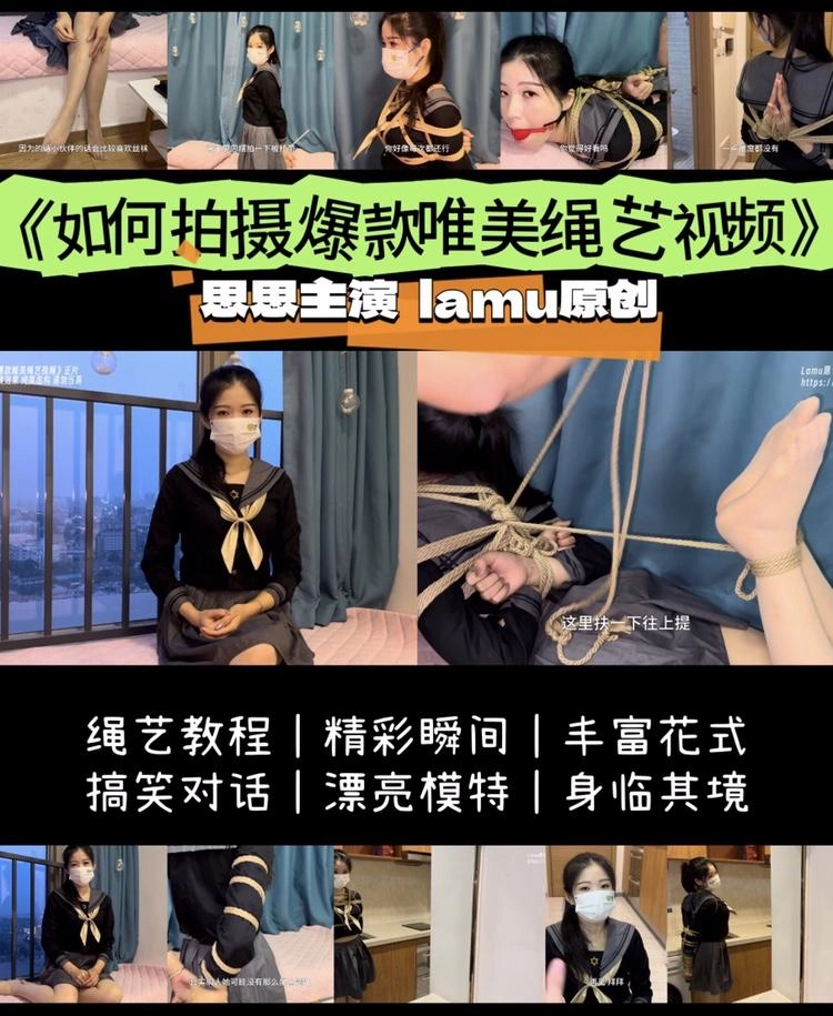 捆绑教程·漂亮模特·精彩瞬间·丰富花式·搞笑对话·全部解密!这次有扎带,五花,日式,欧式,后手观音的捆绑教程,思思是真的专业敬业,小伙伴这次是用心制作捆绑教程(虽不专业,但我是真心希望能教会你,然后期待看到大家的真实作品)。一如既往思思幽默可爱,对话更是笑料百出,小伙伴和思思都是很逗的类型。