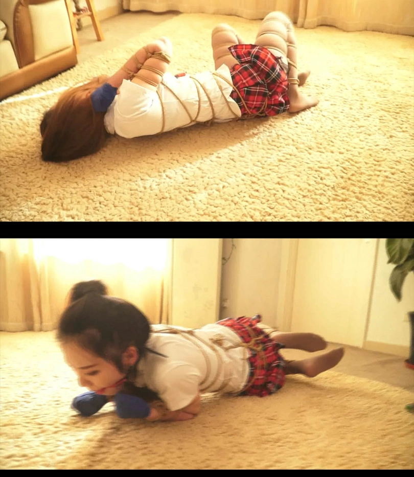 最后女学生发现地上居然有一个手机,她感觉风风火火的爬过去,但她绝望的发现自己手被包裹成球根本用不了,而她虽然可以用丝袜脚勉强点击手机,但脚里头太远,她根本看不到手机屏幕,她最后还是用不了手机,绝望的的女学生玩命的大喊大叫。。。
