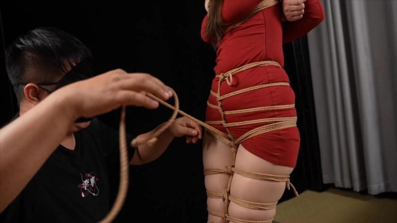 【象人】人妻Miya!高跟肉丝红裙,绑了miya本人最喜欢的紧缚并腿+股绳折磨(50分钟纯绳)