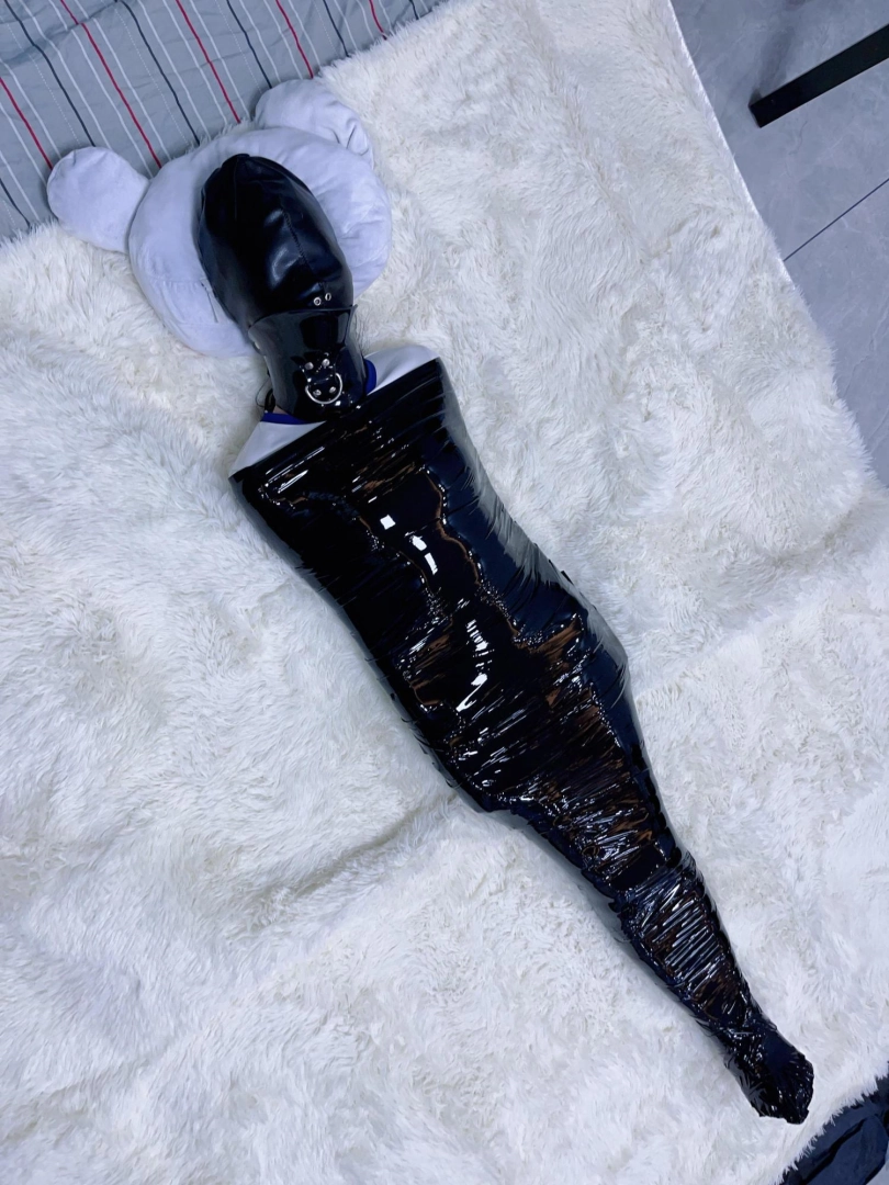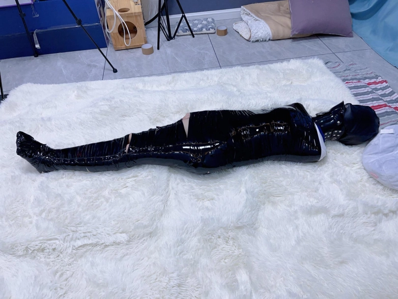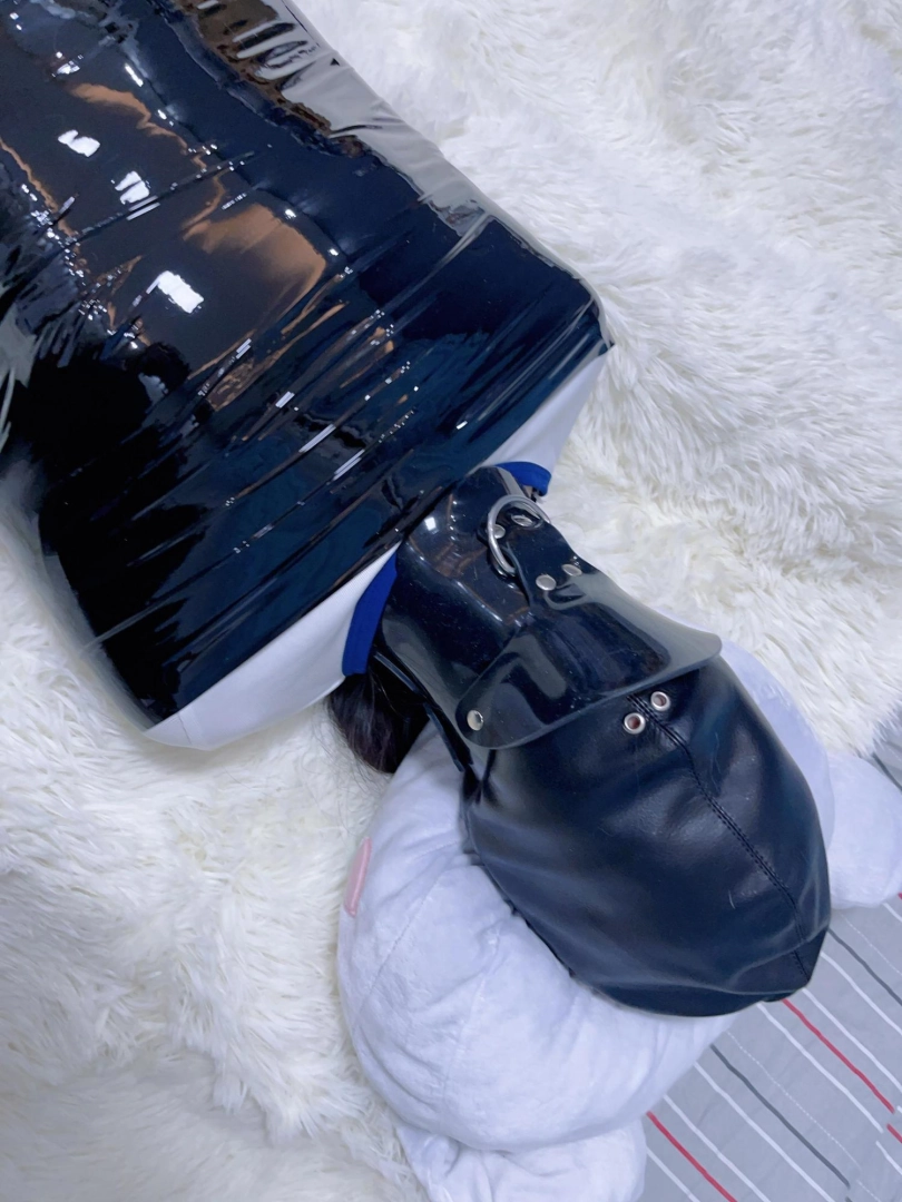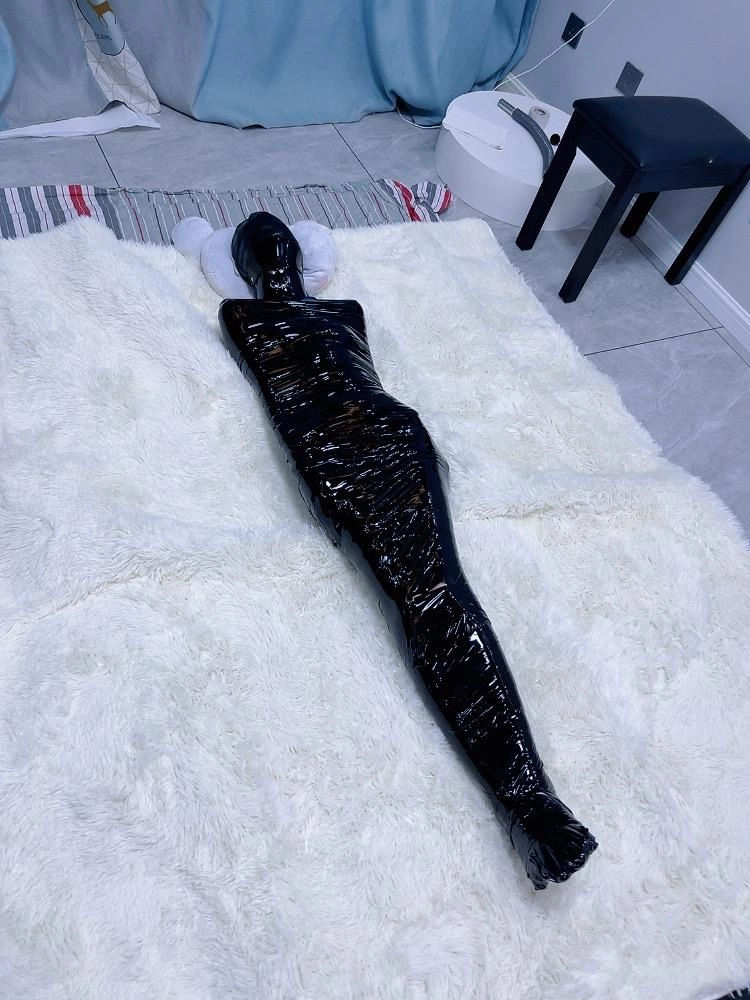 最后茶茶明显惊恐起来了,呼吸急促,拼命挣扎,但是在全包的拘束下超级激烈的无济于事,只能在绝望中迎来自己的闷绝....
