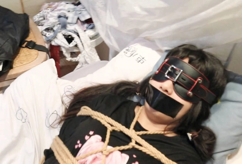 龟甲缚日式绑好,将黑丝美腿绑好在将脚交叉绑好,再把嘴直接封上,这下绝对动不了了,