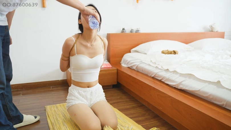 跪得很标准 绑着吃西瓜 戴口枷喝水 不过发现戴着口枷喝水无法下咽 会呛着