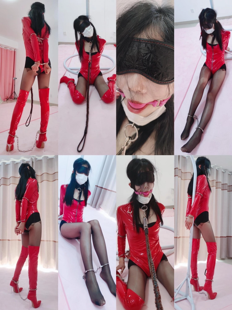 【素人】178气质长腿小姐姐小艺穿性感125公分过膝长靴黑丝+性感连体胶衣带口球镣铐体验