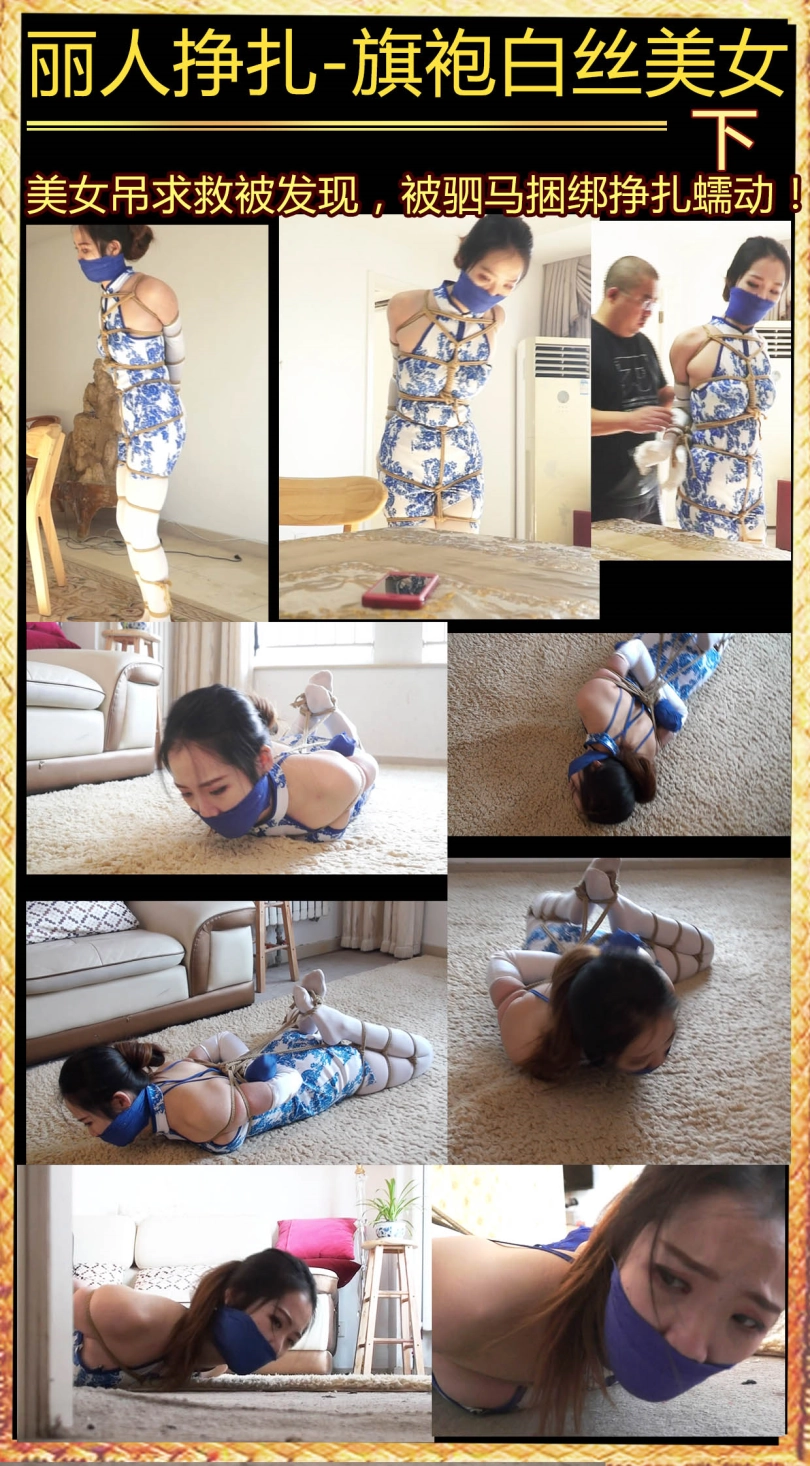 上集说到被吊缚的旗袍白丝美女经过努力的挣扎,终于逃出了自己被吊缚的房间。