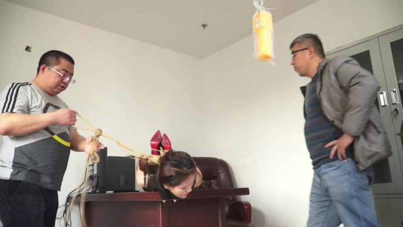 上次定拍美女韩毅大家反应不错 这次又和逍遥联系定拍 美女 受孽 夹舌 挠脚心 鼻勾 打屁屁 跪吊 龟甲 KB 受尽折磨的美女 被老板 百般折磨 被绑在 办公桌上 还要忍受老板的各种揉捏后 被老板送给了老金当玩物
