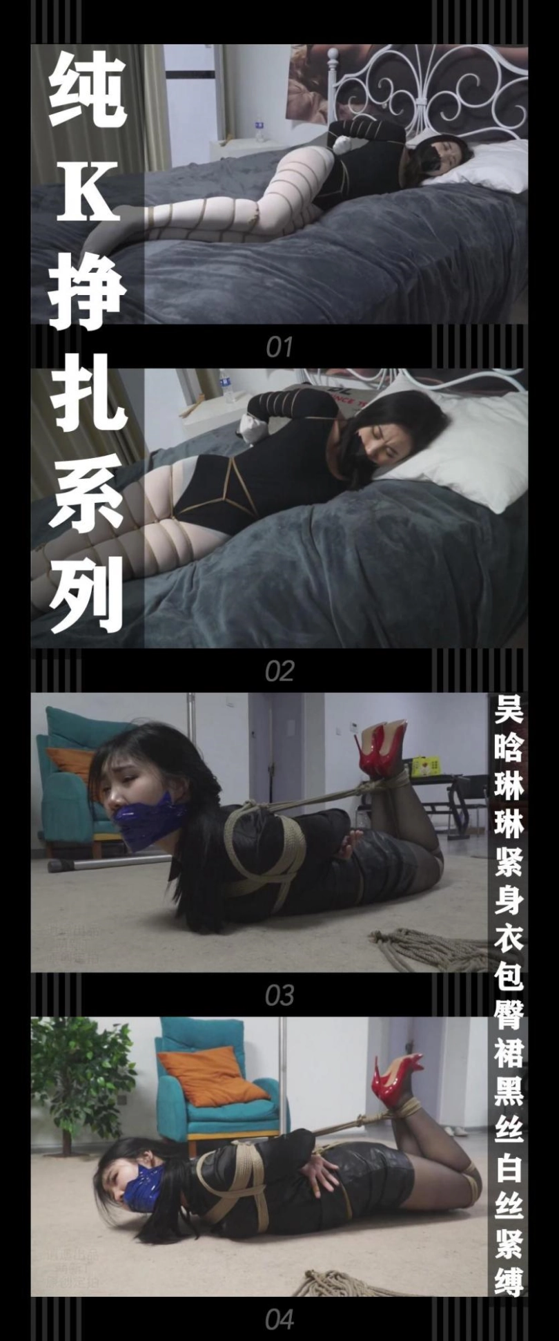 【逍遥】《纯K挣扎系列·吴晗琳琳紧身衣包臀裙黑丝白丝紧缚》