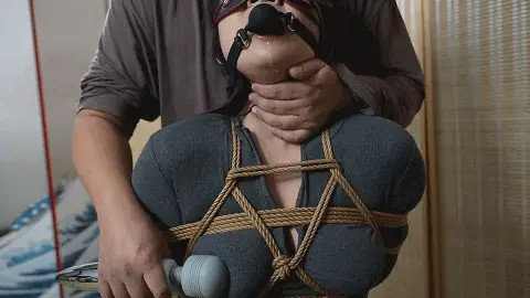 过了一会儿,沉沉苏醒了过来,债主假意让她拍摄一部捆绑写真来抵消债务,无可奈何的沉沉只能答应,按照债主的要求换好了衣服,再次被债主紧缚了起来,期间沉沉被不停的抚摸全身,下身也被绑上了股绳。债主玩弄了一会儿沉沉后不再掩饰,告诉沉沉自己准备卖掉她。发现上当的沉沉试图反抗,反被债主驷马捆绑起来,嘴也被勒上了绳子。可怜的沉沉只能在一声声哭喊中,等待自己的买主上门取货。