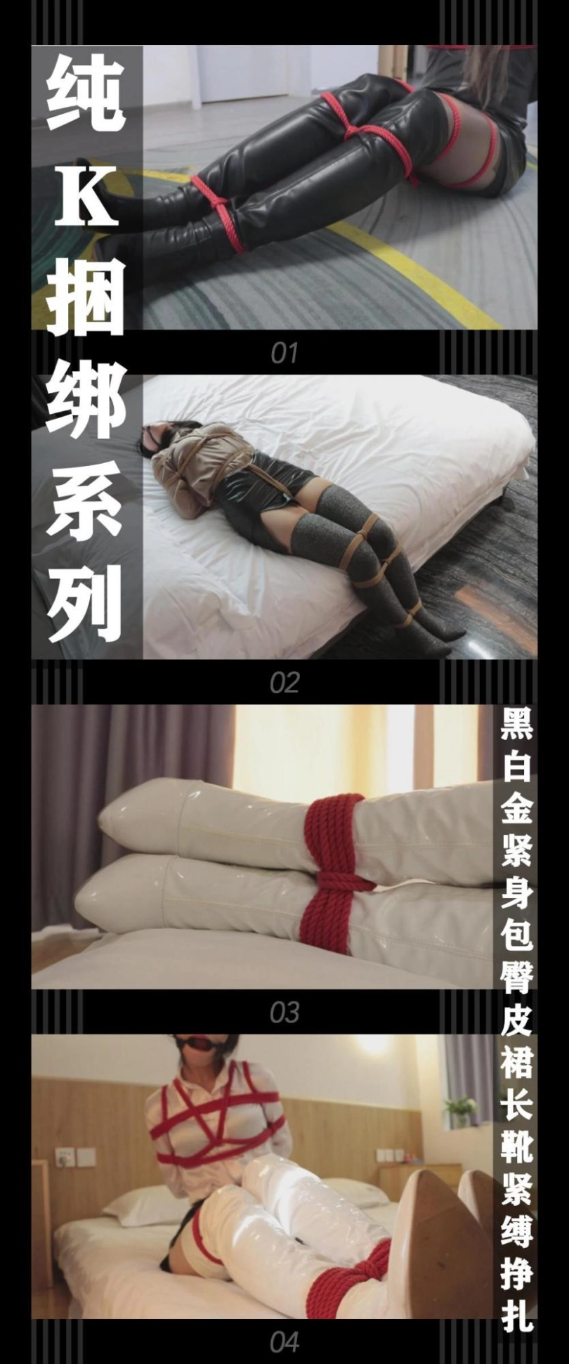 【逍遥】《纯K挣扎系列·黑白金紧身包臀皮裙长靴紧缚挣扎》