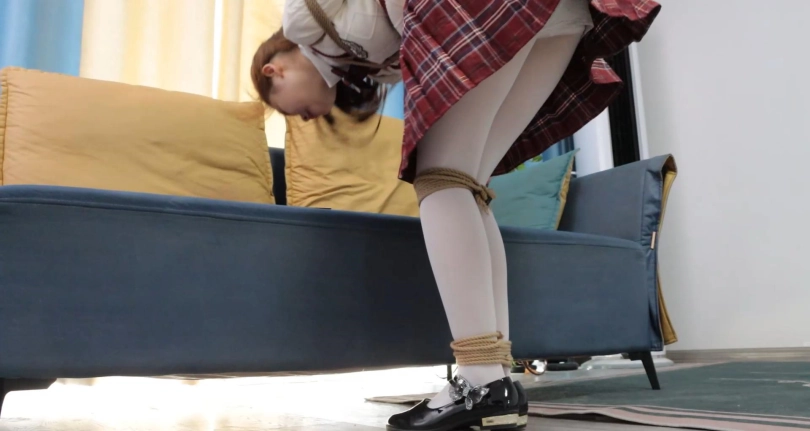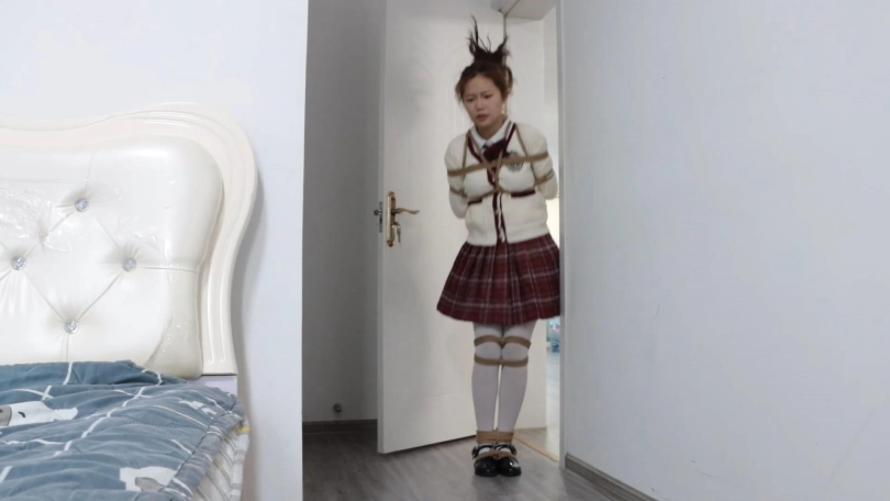 模特以日式后手捆绑的状态开始游戏,每过3分钟,按照以下顺序增加拘束: