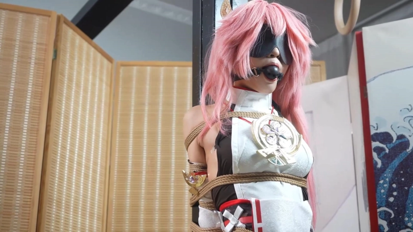 【象人】八重神子 小O-cos八重神子,全装柱缚+黑丝驷马+足袋驷马