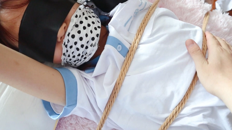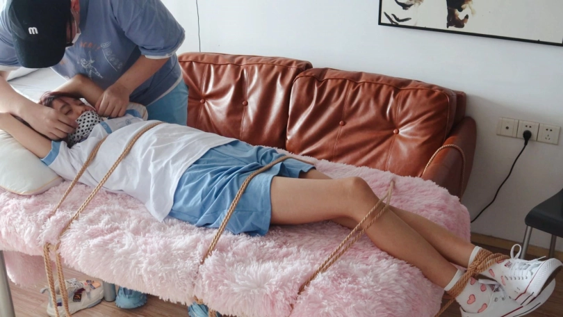 可爱的清纯少女B多条绳索紧紧地绑在桌子上 ,露出了无辜忽闪忽闪的大眼睛 无知的望着男主