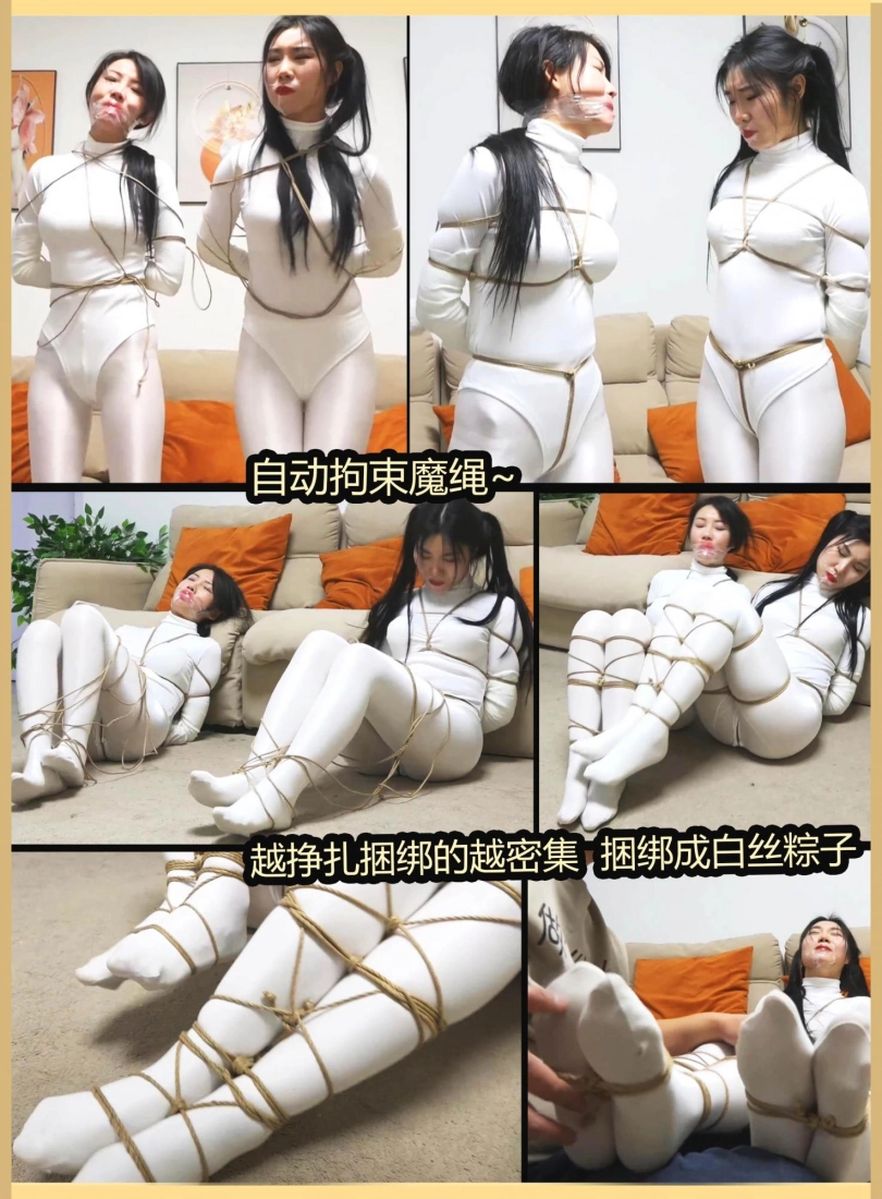 两个白丝美女上次遇到鬼控制身体,好不容易解除了控制,2个人又被飞来的绳子缠绕,一开始还没当回事,结果2个人越挣扎捆绑的越严密,没一会2个人就被完全捆绑,密集到脚掌都被绳子牢牢包裹,这时打扫卫生的人员过来,2个美女奋力求救,男人刚想解缚突然沙发上出现一个纸条说2个美女是自缚的在玩sm游戏,美女们奋力呻吟否认,最终结果如何,请不要错过~