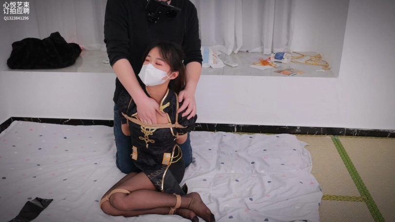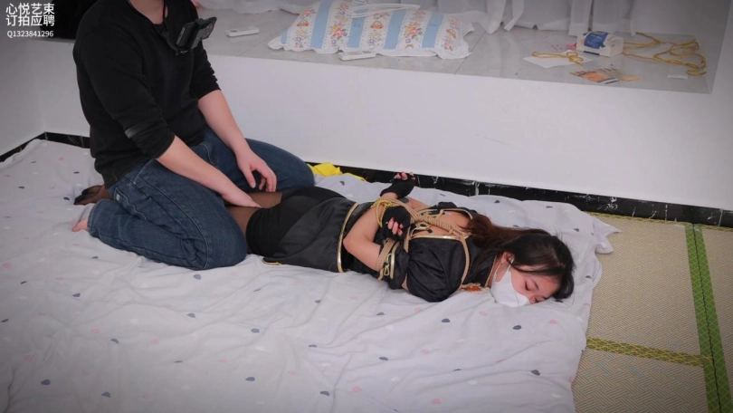 【心悦艺束】黑丝宁红叶cos闺房游戏,捆绑玩熊