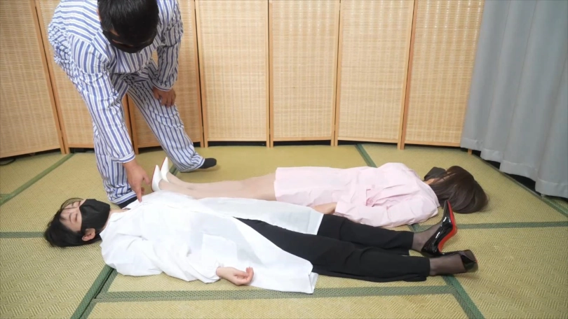 这次加入了一点剧情,大概就是摸鱼的护士和查班的大夫分别被病人勒晕制服,然后就是连缚调教了。