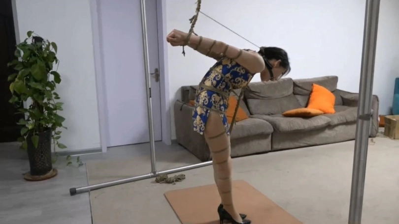 【逍遥】旗袍柳杨欧式紧缚体验 后手吊强制弯腰流口水