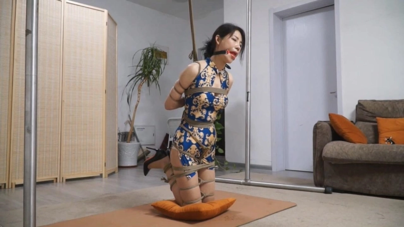 【逍遥】旗袍柳杨欧式紧缚体验 膝盖顶地吊难受的姿势
