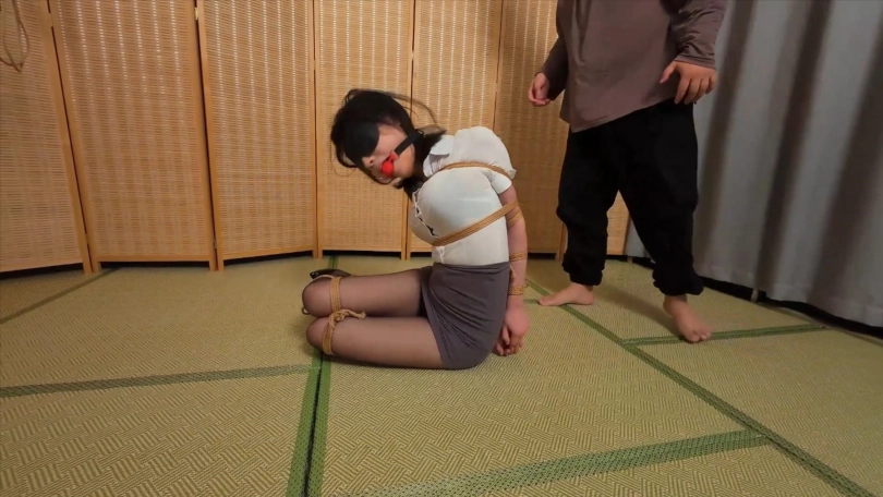 被捆绑以后,老板开始动手动脚的,还拿出了丝袜堵嘴+口球