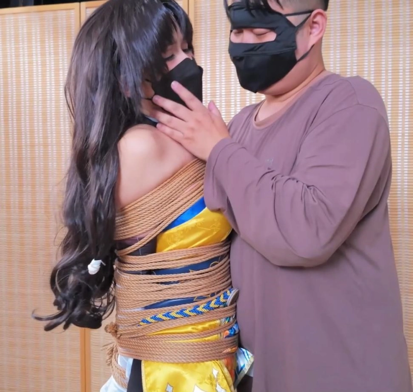 模特小O,胡桃cos,约拍之中的摄影师加入了绳子元素,一根一根的将模特给绑了起来,绳子数量庞大,绑遍模特全身,最后加以驷马捆绑,绑的她呻吟连连,呼吸困难。