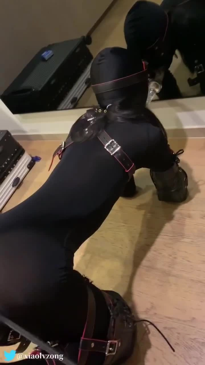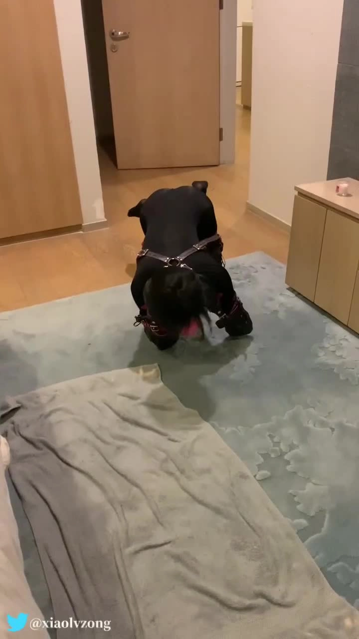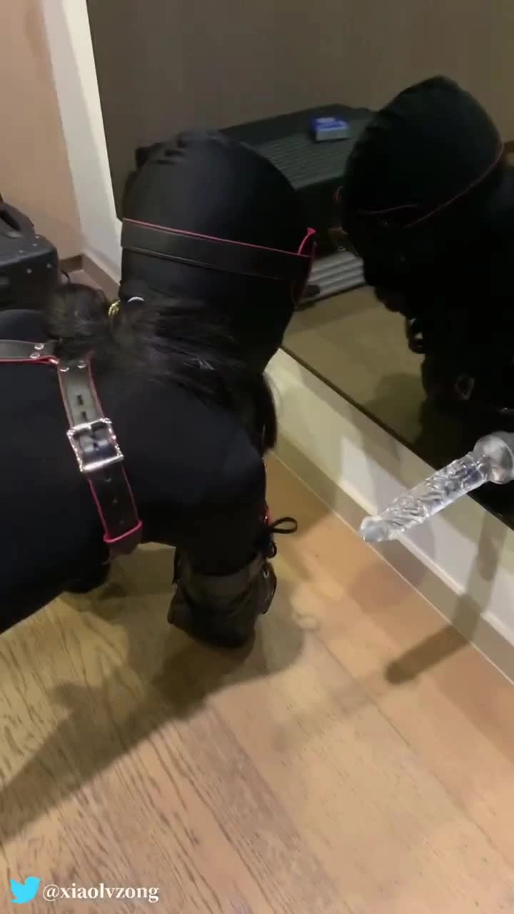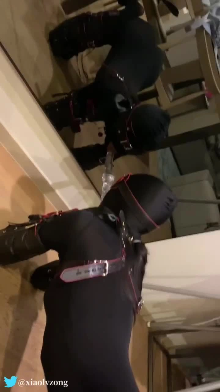 小鱼穿上连体衣,四肢被拘束套装紧紧的拘束着,变成小狗跟主人玩丢球游戏和练习口的技巧,第一次穿k9套装连走都走不稳,戴着头套和眼罩的它只能乖乖舔着吸附在镜子上的水晶棒棒边被主人用拍子打屁股