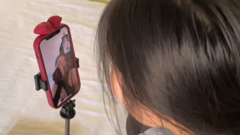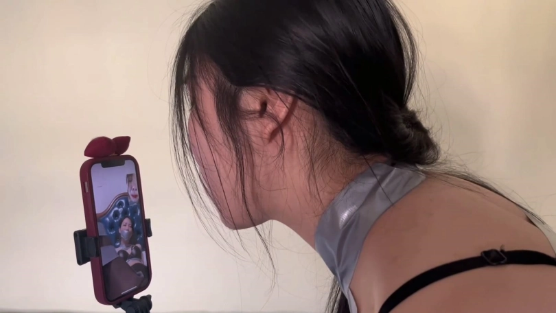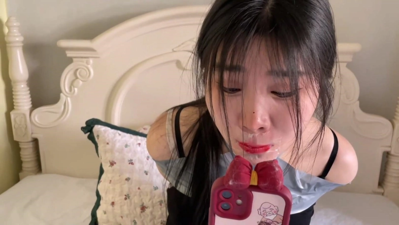 镜头另外一边。次卧。吴晗被密集捆绑在小床上。坏人故意让她们视频通话。