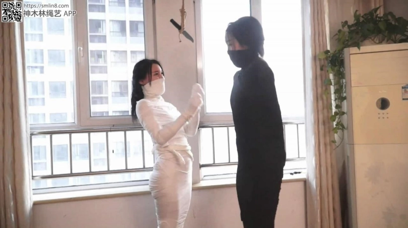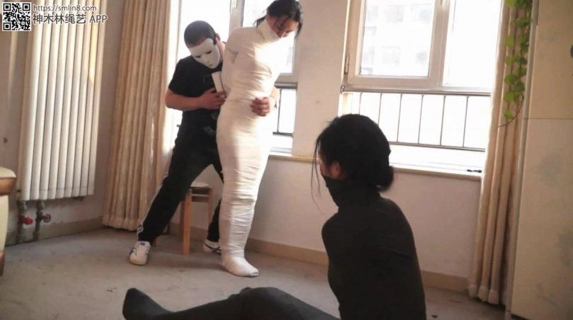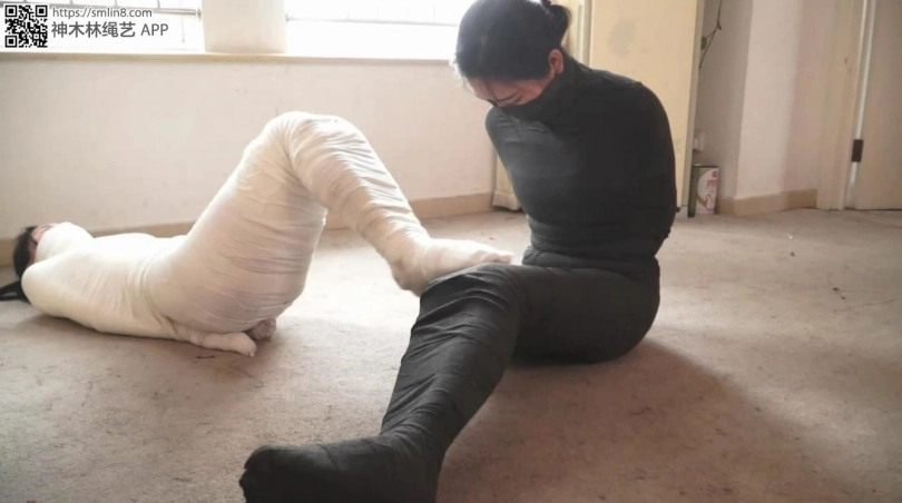 【逍遥】超稀有!《木乃伊姐妹02》黑白木乃伊美女 翻滚 站立 够小刀 跳跃 各种艰难动作 !美女们累的脸都憋红了~绷带握拳包裹的小手就算挣脱也无法解开拘束