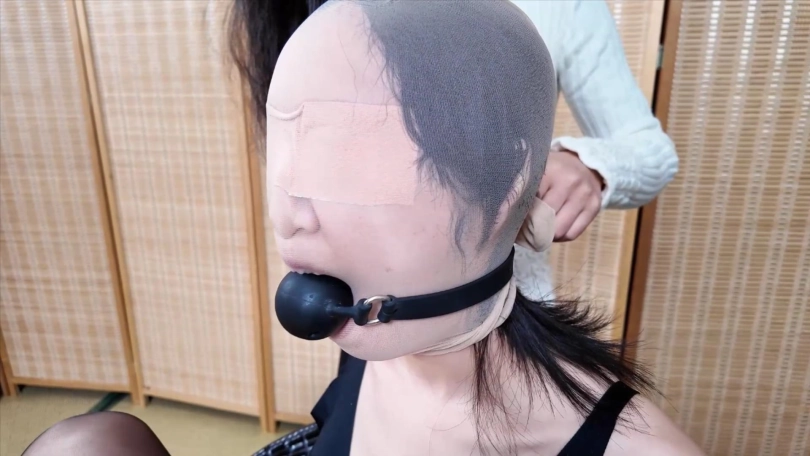 验收完成,两人均被蒙眼后丝袜套头,外面再用大号的口球堵住嘴巴