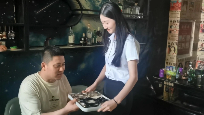 一家俱乐部酒吧 鑫总给小妹刷业绩 小妹端上来金属 各种项目安排 摇骰子输给鑫总后更刺激的X架 笼子