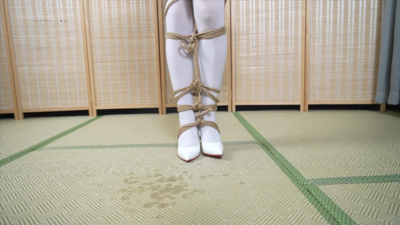 1.高跟鞋单脚吊缚,嘴巴用厚丝袜堵住