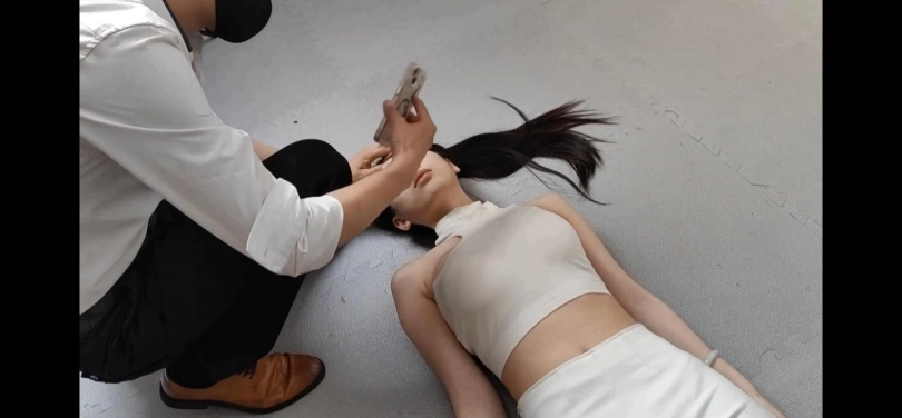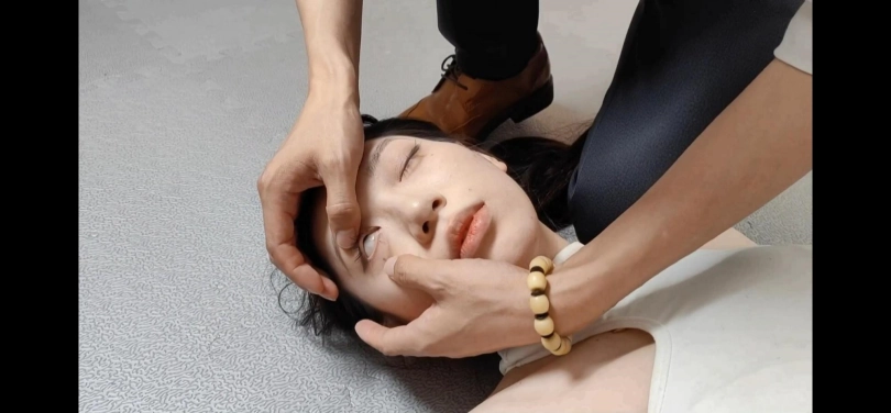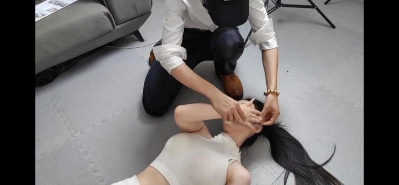 被撞晕失去意识的漂亮小姐姐被扛回家里摆弄,涉及元素有裸足、足恋、摆弄、翻眼皮等。