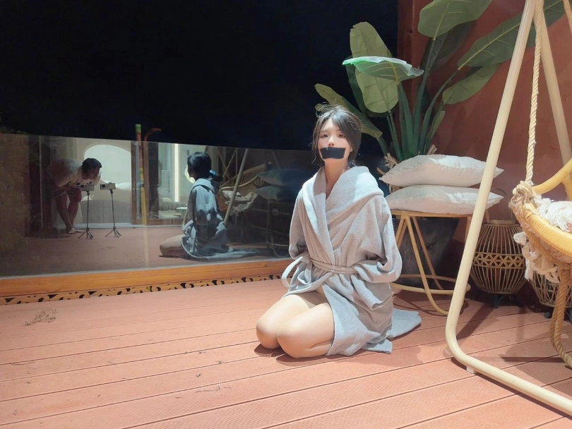随后又被安排到露台继续,旁边就是不听路过散步的行人,不知不觉的脸红,让人莫名其妙,丝袜足jiao也不错。