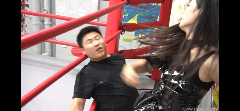 两个黑衣皮靴美女被反派狠狠蹂躏,摆出各种羞耻姿势 并先后被打晕倒地。