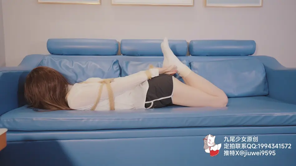 【九尾少女】运动服白棉袜少女突遭绑架,手脚捆绑,股绳折磨,试图逃跑脱出失败,被抓回后开腿捆绑塞入TD,强制震动GC