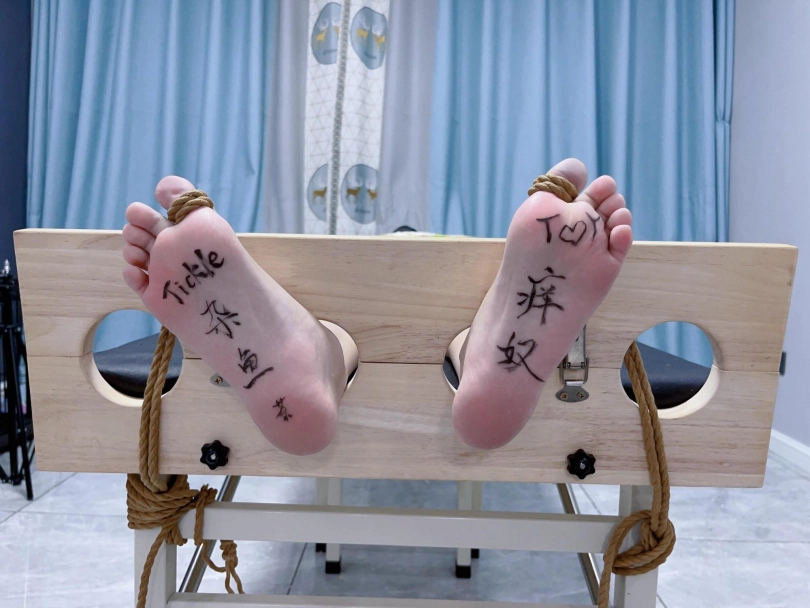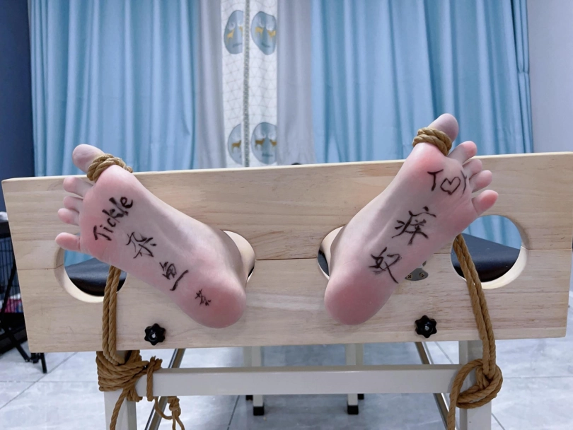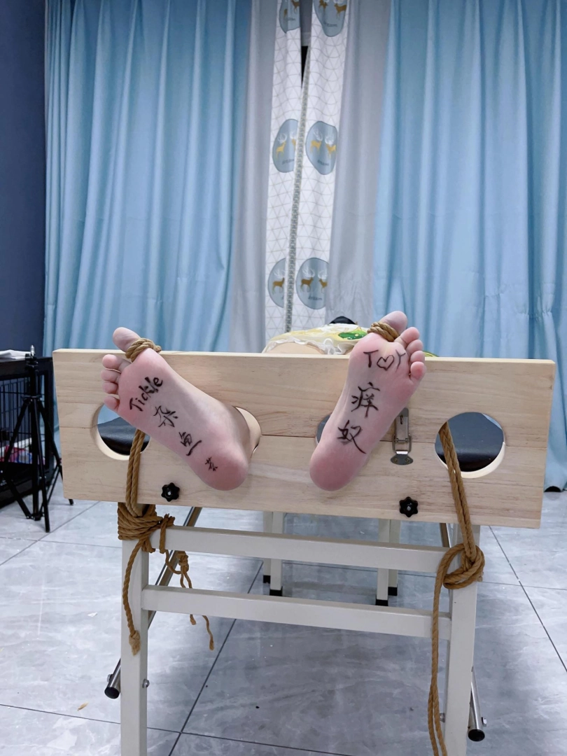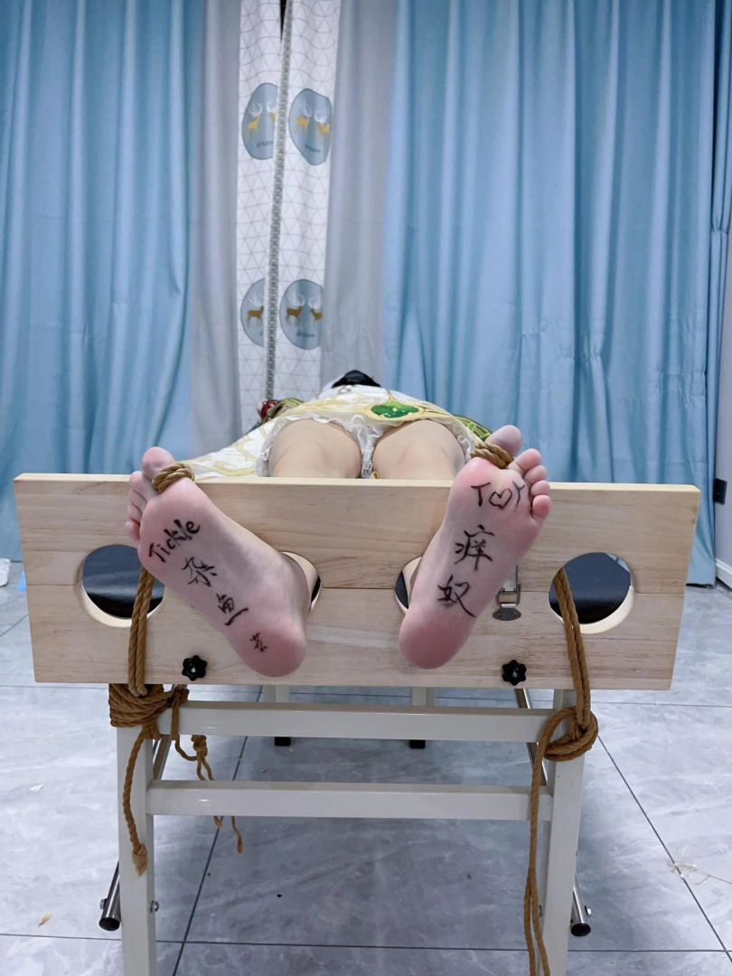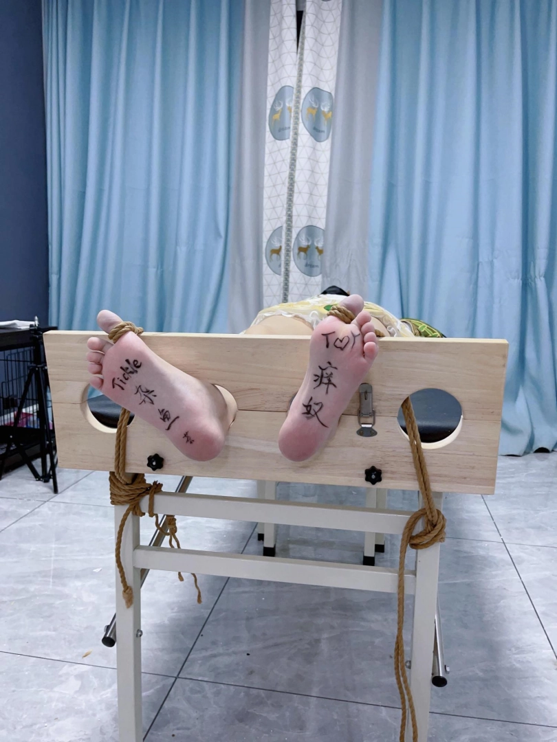 姿势:痒刑床+足枷(一定要固定脚趾)
