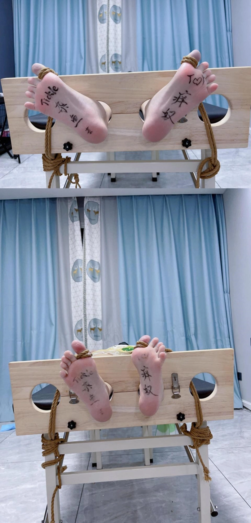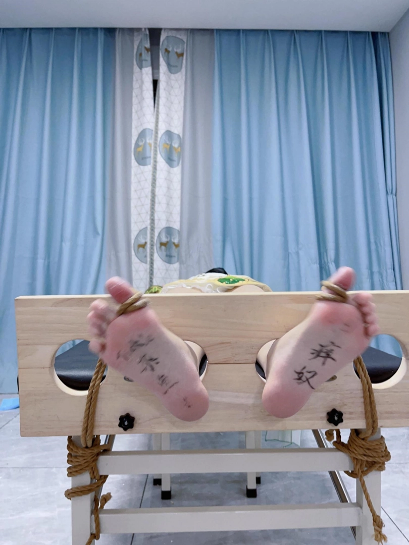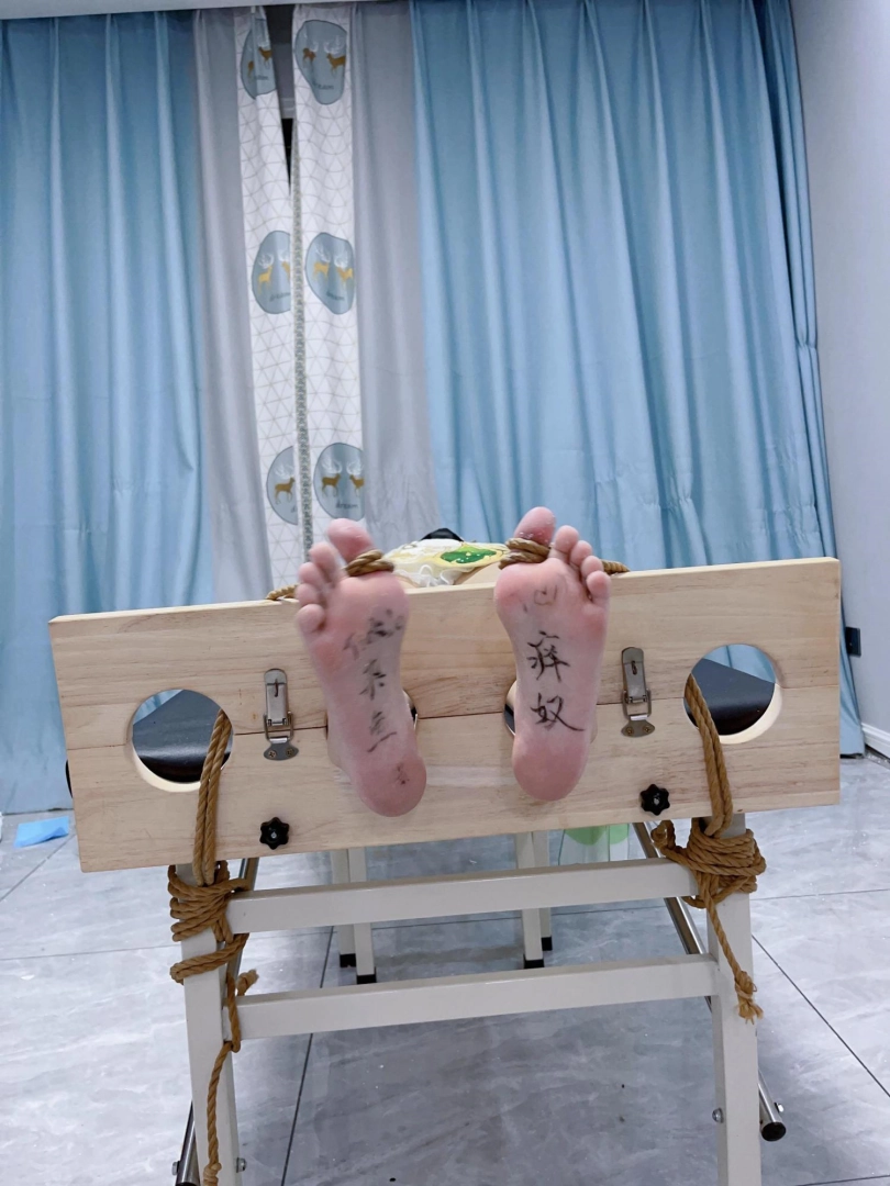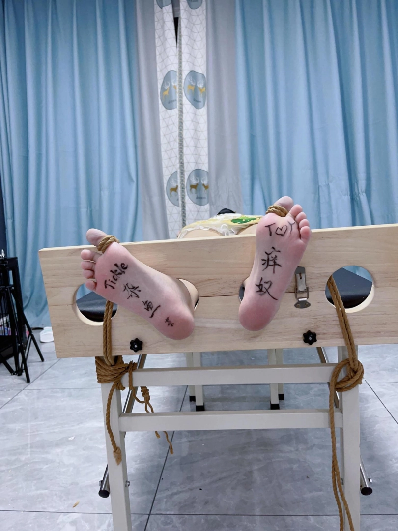 姿势:痒刑床+足枷(一定要固定脚趾)