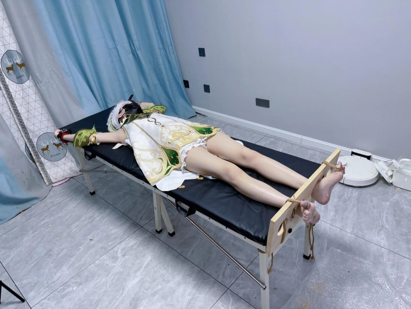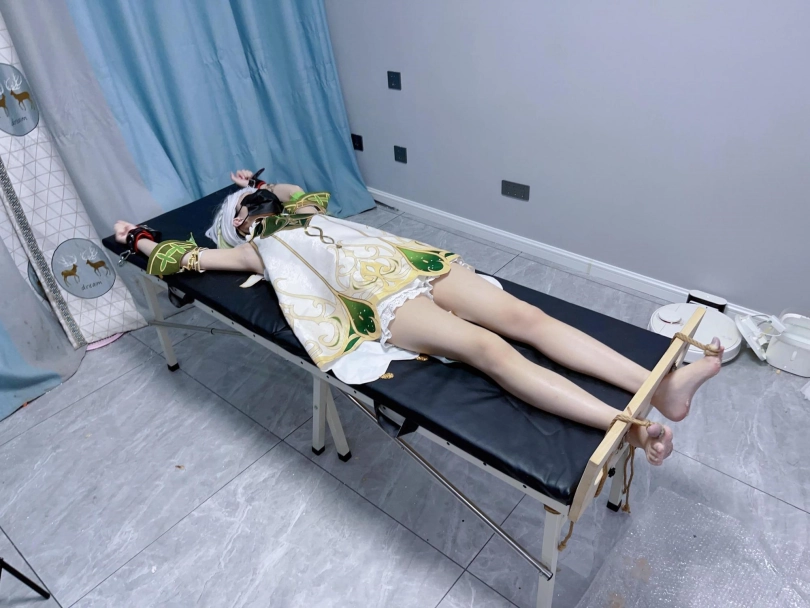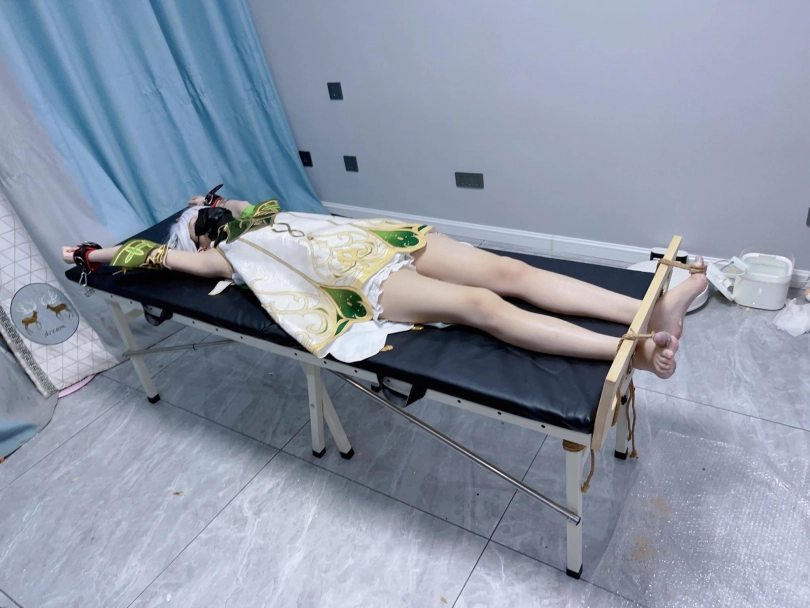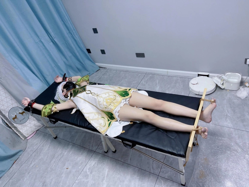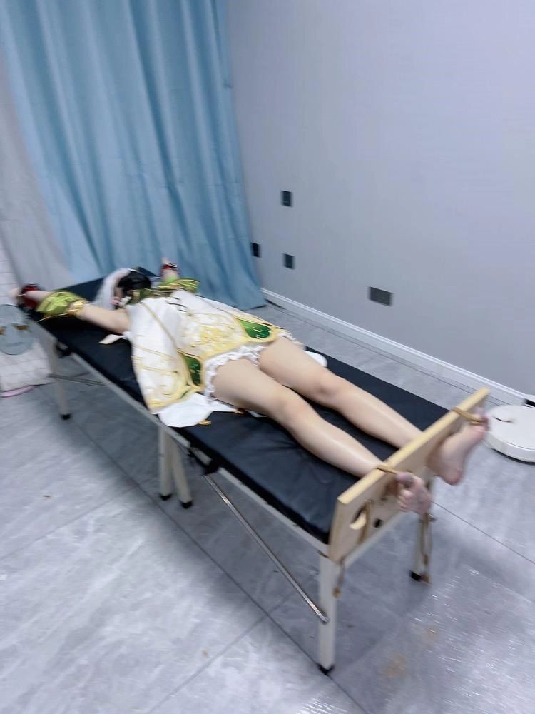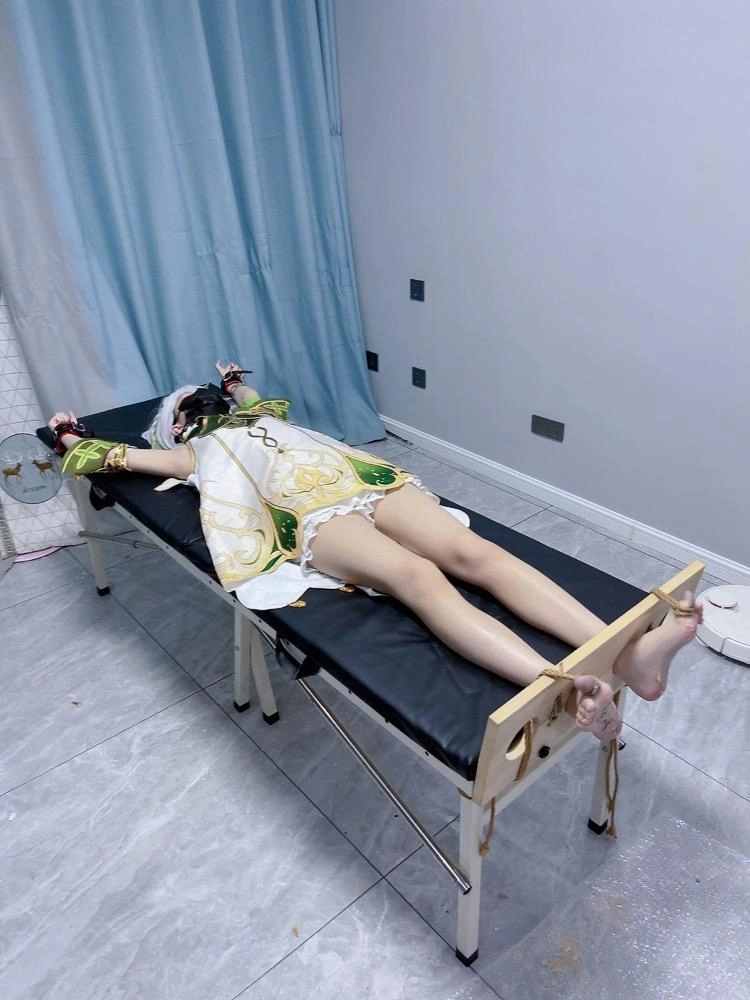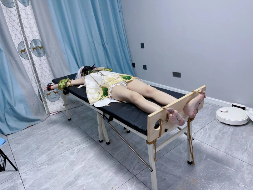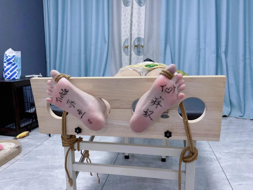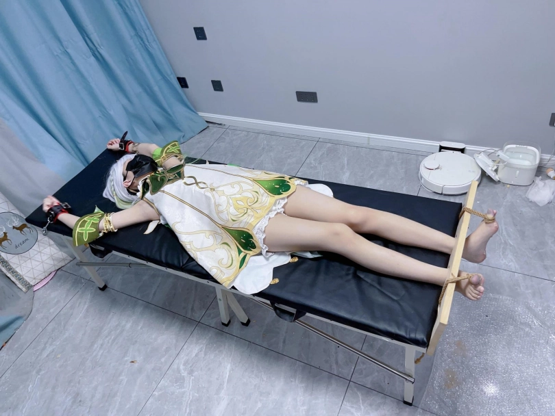 内容:先让茶茶穿着小草神纳西妲的cos服固定在痒刑床上,足枷锁好后用绳子固定好脚趾禁止乱动一丝一毫,然后在脚底写上羞耻的文字(杂鱼痒奴)(Tickle Toy)。